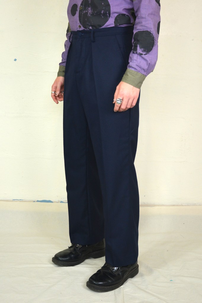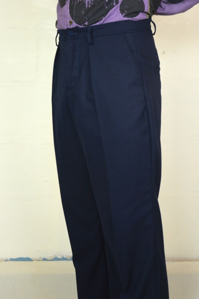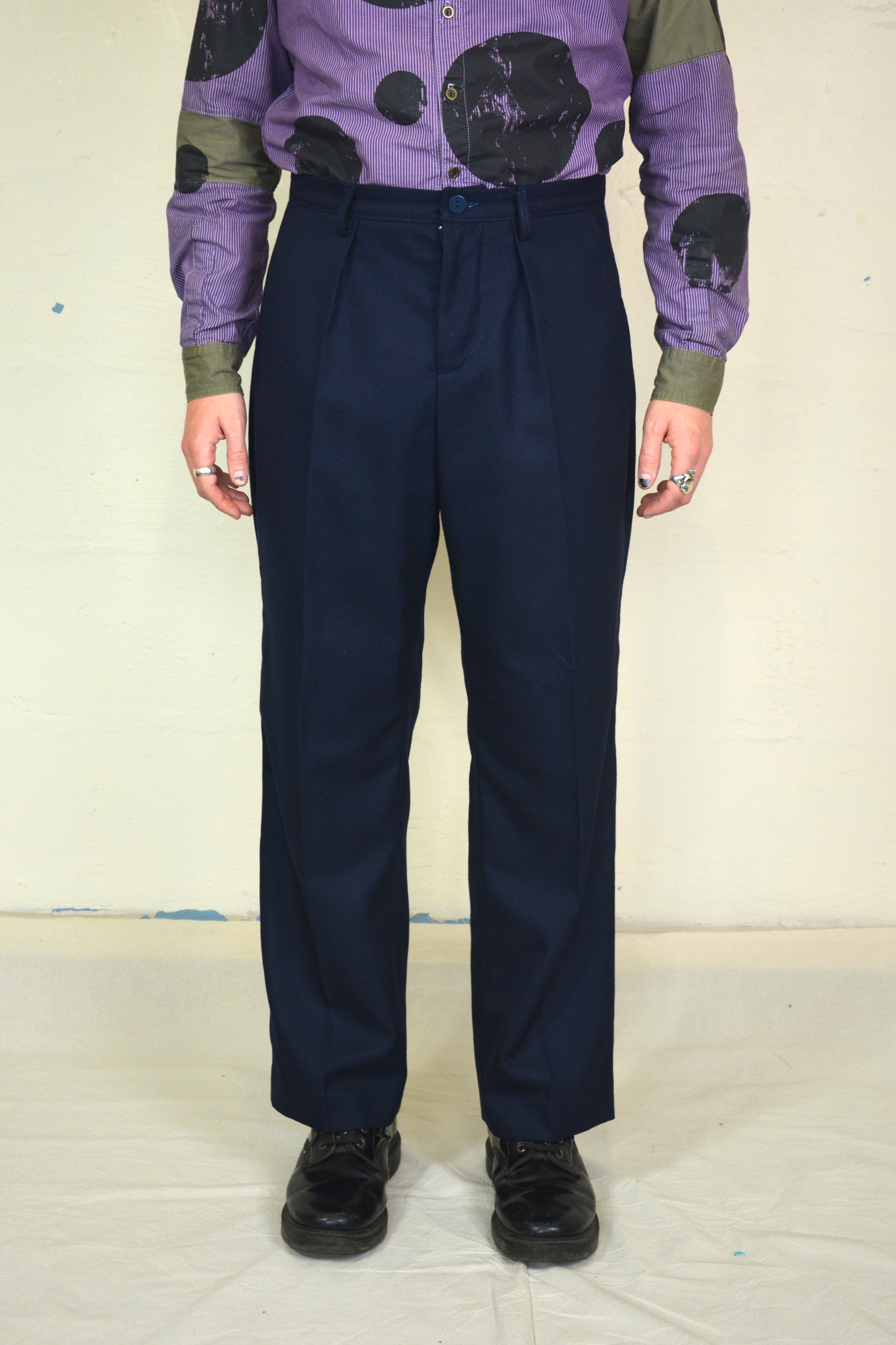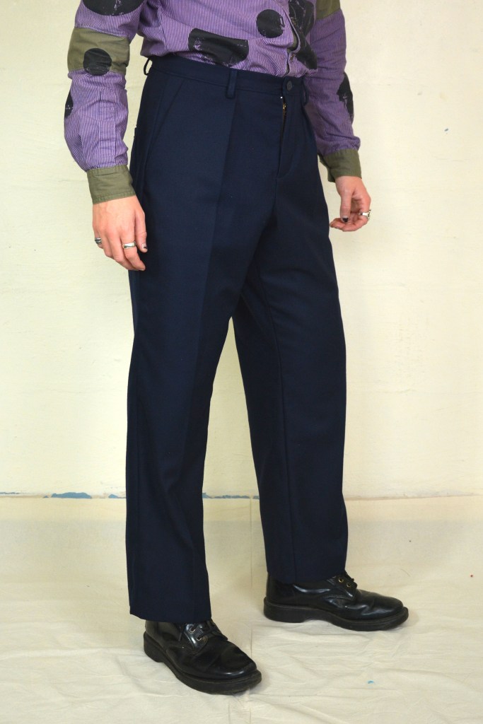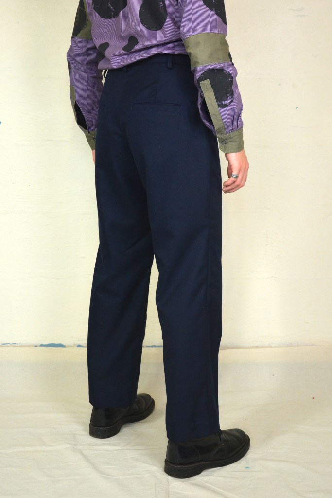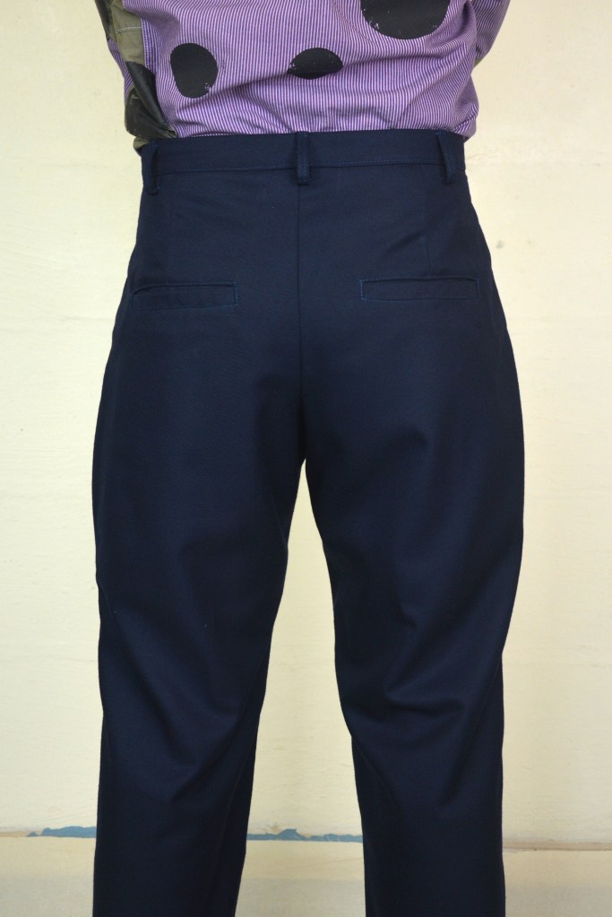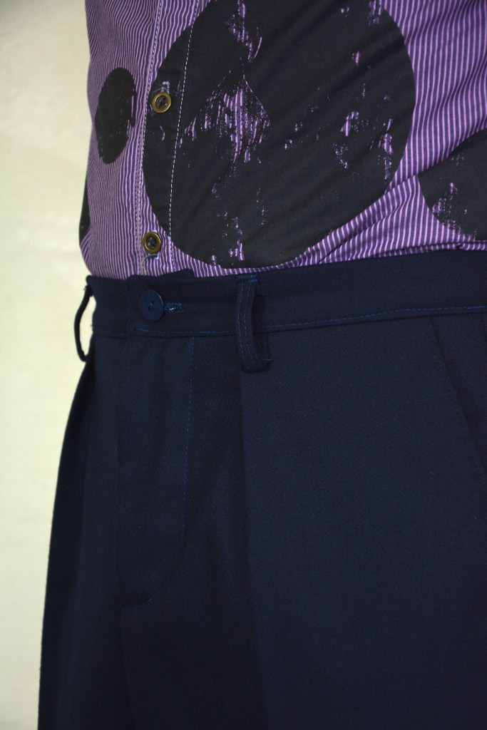 Bespoke pleated suit trousers made from a navy wool blend fabric. Made these to practice making this cut of trousers and improving my pattern drafting.