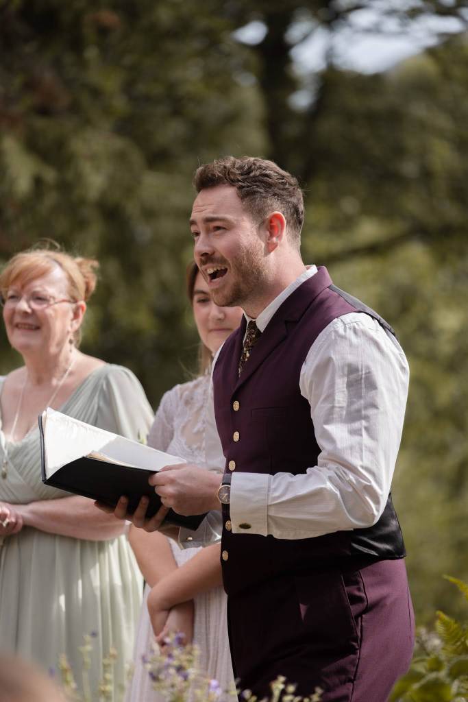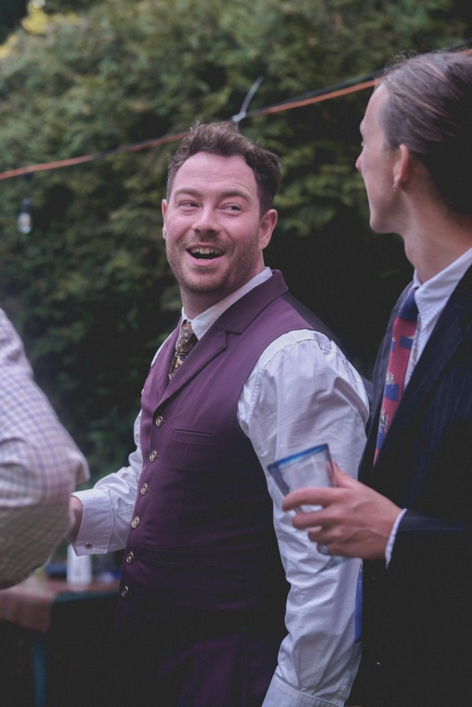 In summer of 2025 I was commissioned by my close friend Sean to make his Wedding suit. He wanted a pair of trousers, shirt and a waistcoat but no jacket. I therefore designed the waistcoat with the lapels to make more of a statement and fill the place of the jacket visually round the neck. I went for a traditional English 6 button waistcoat style with high waisted double pleated trousers. We used a fairly light weight English wool and an Italian pure cotton for the shirt. Photography by Stefano Ferrarin.