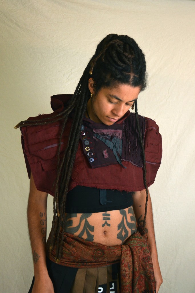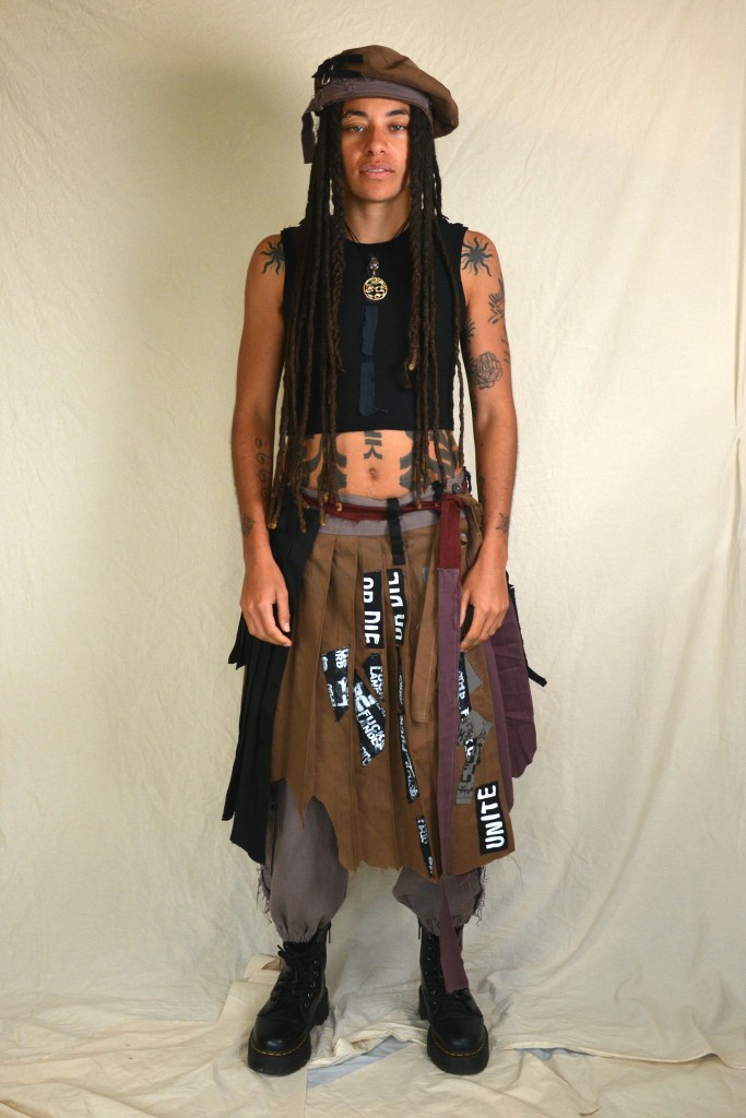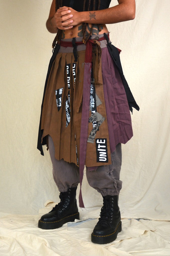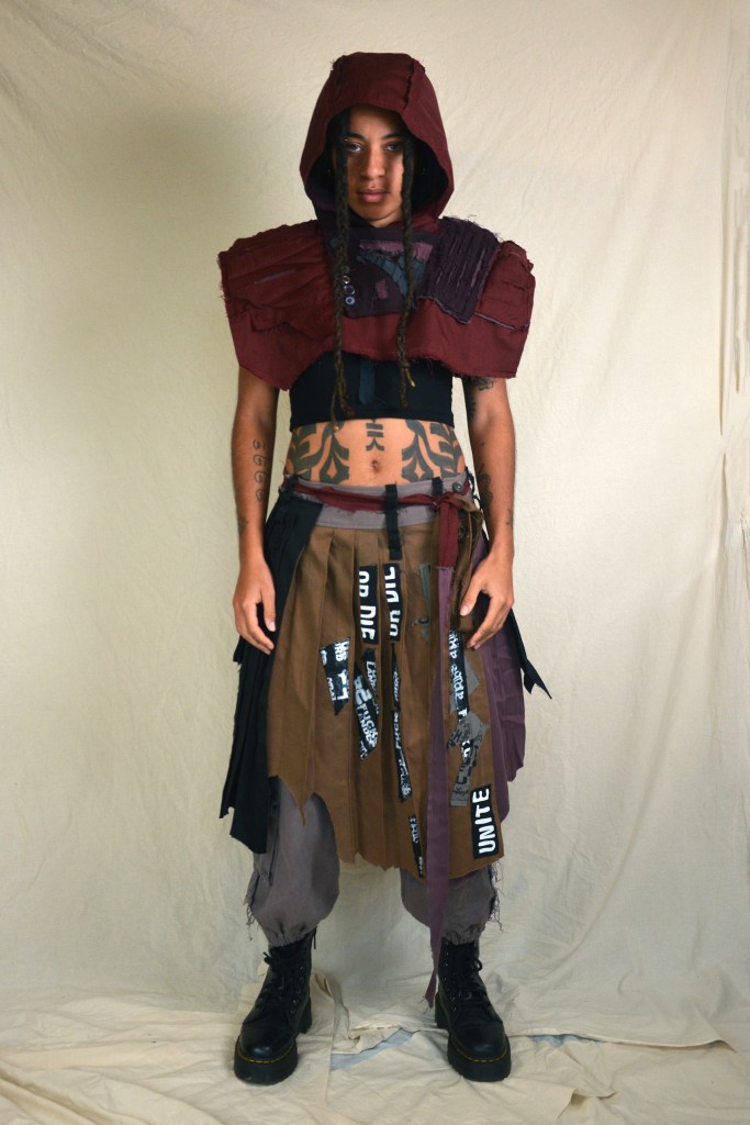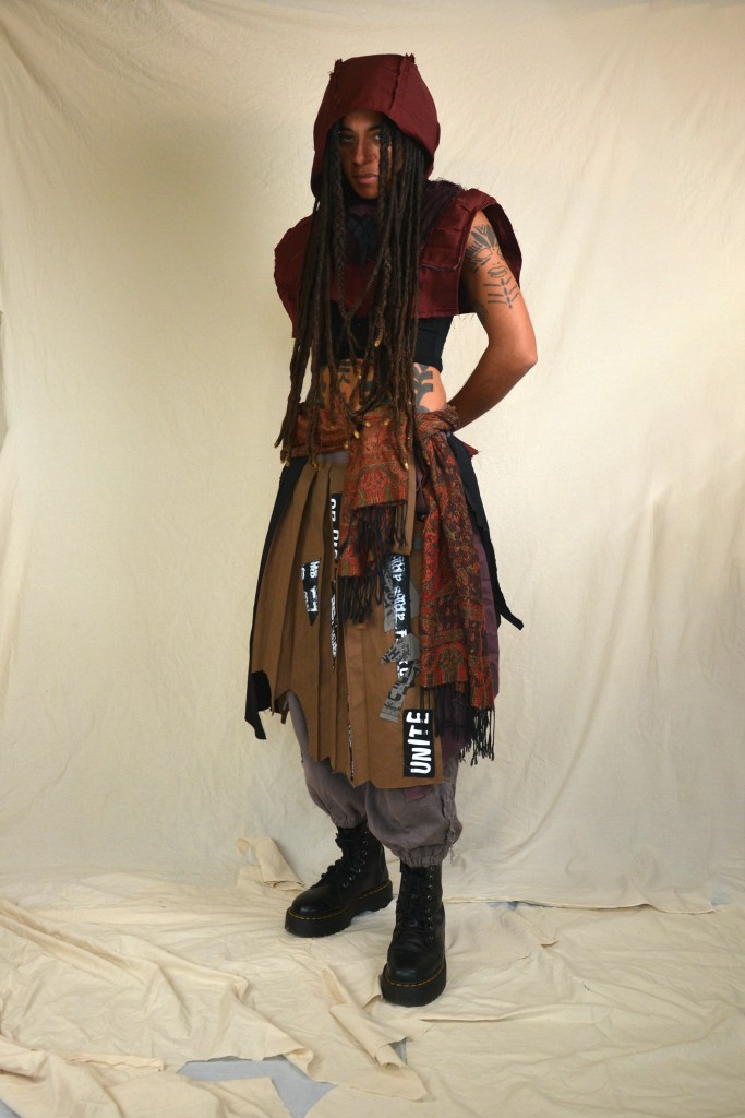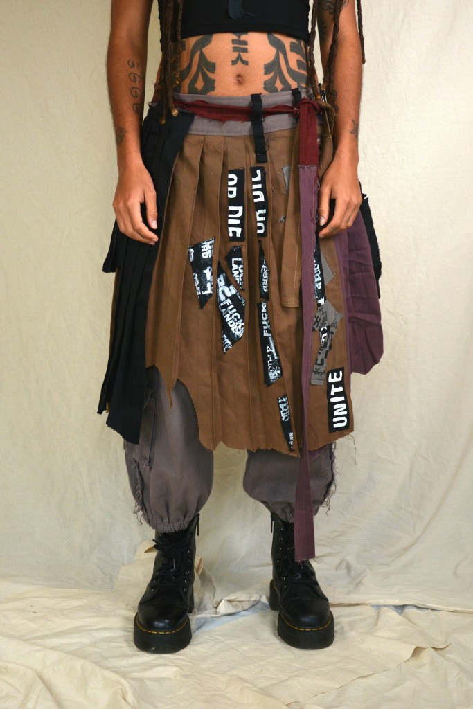 At the start of 2025 I approached Grove with a new colour story which was a departure from a lot of the previous work we had done together. Focusing on tonal variations or washed out blues and greys, with some dark purples and reds. Along with these colours I presented ideas for 5 different outfits I could potentially make for them for an upcoming tour. They picked two of the outfits and then over the next month we developed these ideas and I made them into reality. I did a lot of over dying to create the washed out aged looking shades of fabric.