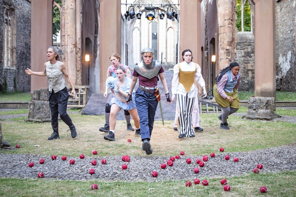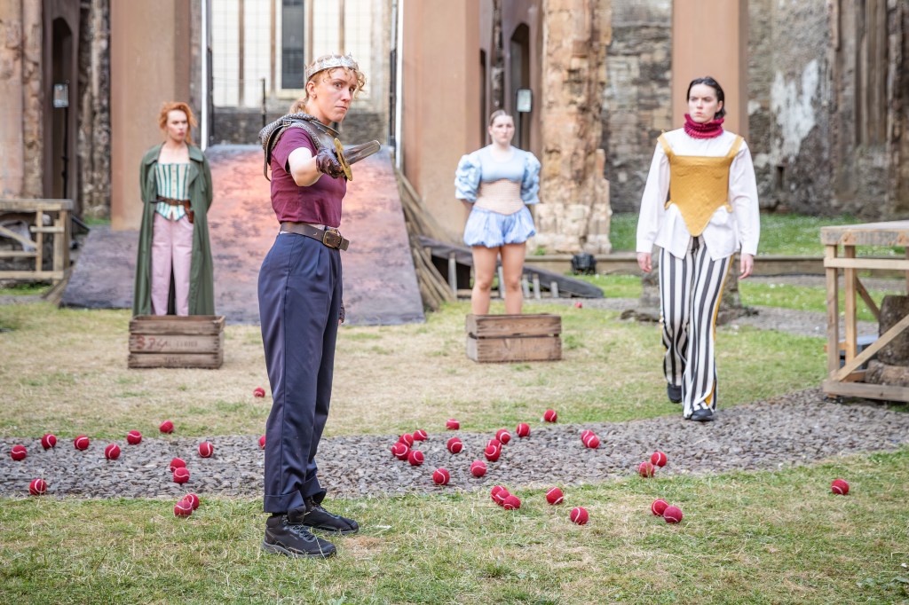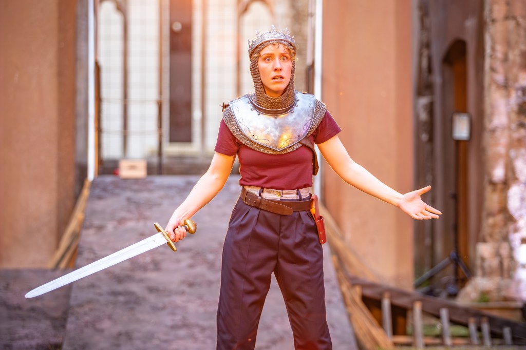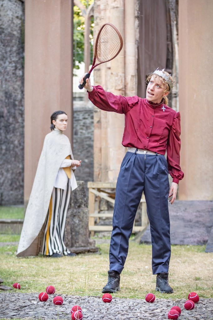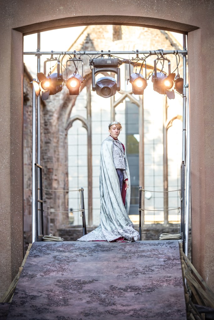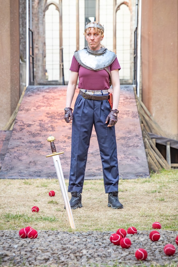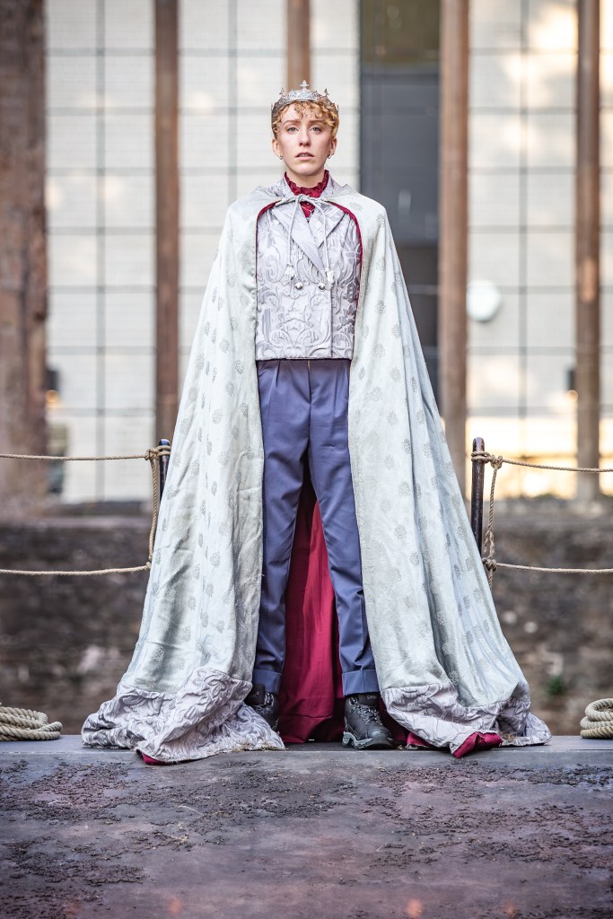 I was asked to make Henry V suit for this production. I worked from design drawn by the costume designer and created a cropped double breasted jacket made from silver jacquard fabric and then a pair of pleated trousers from a navy wool fabric. I pattern drafted, toiled, fitted and made these two pieces. I also assisted doing smaller makes and alterations for the rest of the production. It ran for 7 weeks in Bristol at Temple Church
