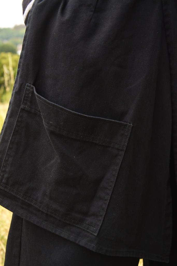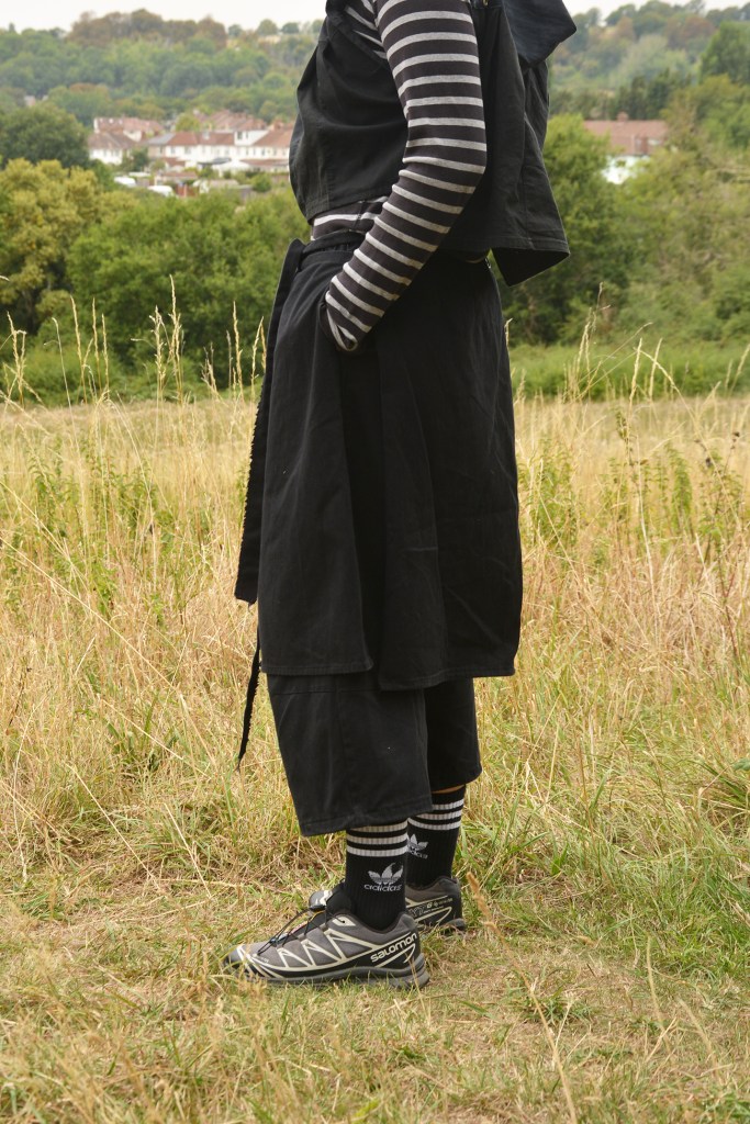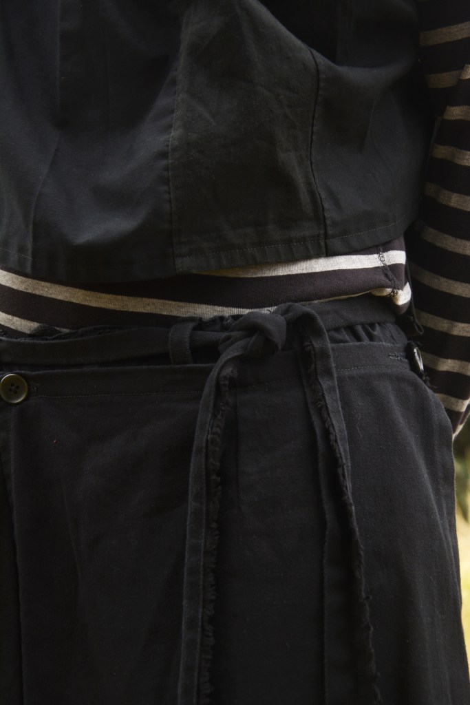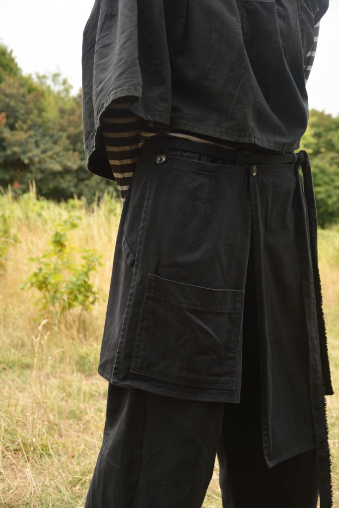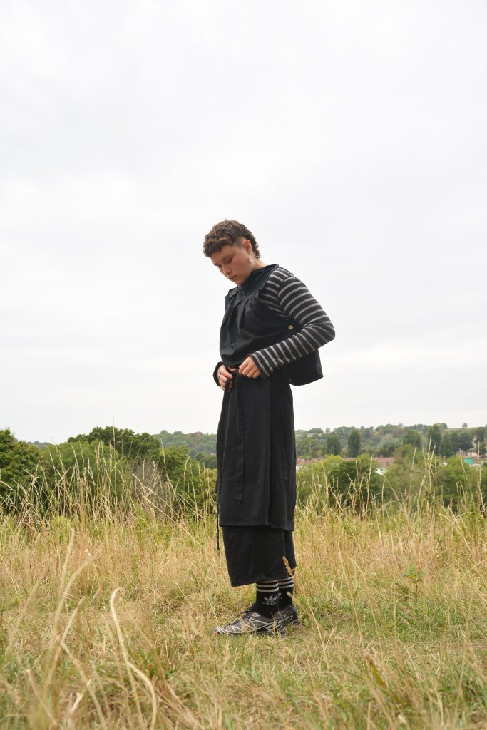 In March 2025 I worked with Bristol based musician T L K . they came to me asking for a trouser inspired by the Maharishi Hakama Trousers and I came up with my own design with removable skirt panels and a fabric belt tie, was a really enjoyable process working with them and witnessing their joy of the final result.