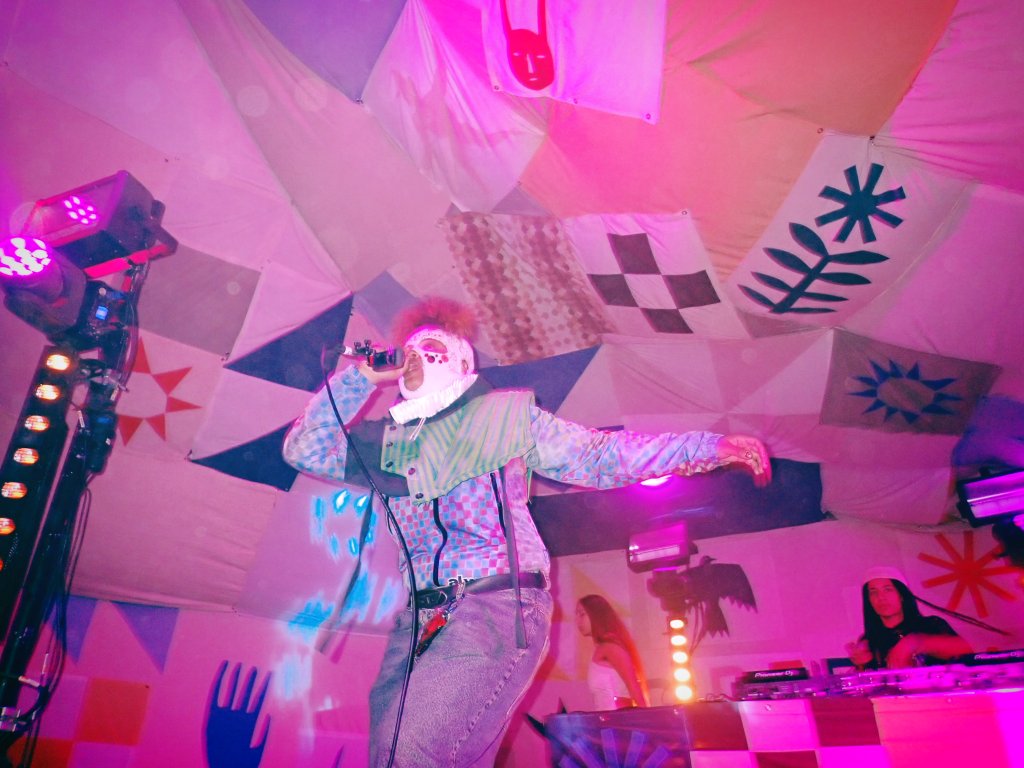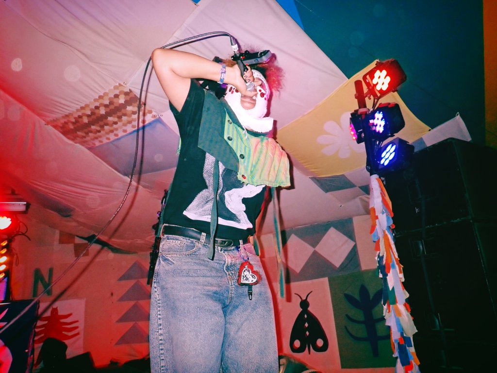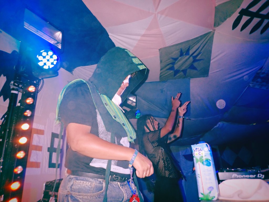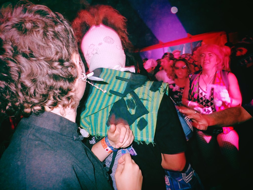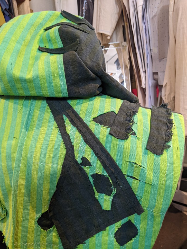 I created this bespoke piece for London musician Taliable. We decided on a hooded cropped vest with ties beneath the arms, it features a padded shoulder which I tailored round the shape of a shoulder so it adds a lot of structure to the piece. The two fabrics are the same but the darker one I over dyed black